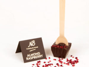 DE Dunkle Schokolade (min. 55% Kakao): Zucker, Kakaomasse, Kakaobutter, geröstete Haselnüsse, geröstete Mandeln, Himbeer Aroma Dekor: getrocknete Himbeer Stücke; Emulgator (Sojalecitin), Salz, natürliches Vanillearoma. EN Dark chocolate (min. cocoa 55%): sugar, cocoa mass, cocoa butter, rosted hazelnuts, rosted almonds, raspbderry flavour, decor: dried rasberry peaces; emulsifer (soy lecitin), salt, nautral vanilla flavouring.